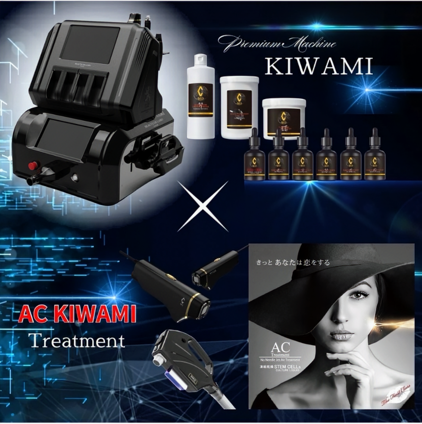 凍結された幹細胞培養液のジェットエアー導入。通常のACの2倍以上美容液を安定浸透